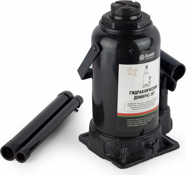 Домкрат 20 тонн, "БелАК": Применение высокоточного японского и германского оборудования при изготовлении грузоподъемных механизмов придает домкрату гидравлическому 20 тонн (дг-20) безупречные технические и эксплуатационные характеристики. Корпус домкрата изготовлен из легированной стали с износостойким антикоррозионным покрытием. Опорная площадка изготавливается из литого чугуна. Качественные резиновые уплотнители обеспечивают гарантированную герметичность гидравлического инструмента для плавного перемещения груза в обоих направлениях. Шток грузоподъемного оборудования также произведен из легированной стали. Компактные размеры обеспечивают удобную транспортировку механизма. При необходимости делительного удержания груза в поднятом положении должны применяться специализированные подставки, обладающие оптимальными показателями грузоподъемности, высоты и конструктивной прочности. Этот товар имеет официальные награды: Домкраты «БелАК» удостоились престижной национальной премии «Автокомпонент года 2015» и «Авт